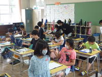 全体での指導の後、木村先生にもお手伝いいただきしっかりと個別指導ができたので、子供たちは筆の握り方や力の入れ方が少しずつ分かってきたようでした。