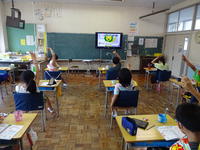 それは、指導しているのが5年担任の小畑先生であることです。ご存知のように小畑先生は、中学校英語の免許を持っています。その長所を生かして5年生だけではなく、6年生の英語も担当していくことになったのです。6年担任の湯本先生は、中学校保健体育の免許を持っている長所を生かして、5・6年生の合同体育の指導を行っていきます。