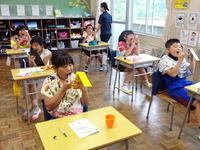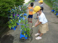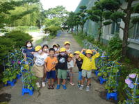 学校が再開されて一カ月、学校生活にも慣れ、朝顔を育てることだけでなく、何事にも明るく前向きに頑張っている1年生です。