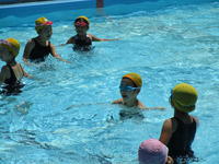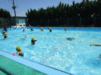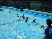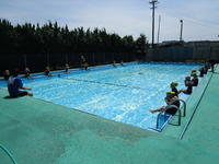 昨年度までは、指導者の目が行き届くことを一つの目的に、2学年合同で行っていたのですが、今年度は、密を避けるため一学年だけでの学習です。写真のように、少しプールが広く感じられます。