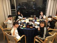 お楽しみの夕食です。みんな満面の笑顔で食べています。