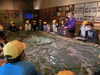まず、熊本市防災センターで学習をしました。説明を聞くだけでなく、質問もしてしっかり学習できたようです。