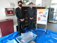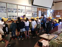 あいにくの天候で、傘をさしての見学でしたが、放水の様子も見ることができ、資料館ではしっかりと説明を聞くこともできたので、良い勉強ができたようです。