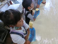 屋根のあるところでおいしくお弁当を食べた後、アイスクリーム作りに挑戦です。