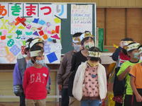 今日(11月11日)、1年生は生活科の学習で「秋祭りだよ! 全員集合」の学習に取り組みました。「秋祭り」ですが、学習ですから1年生の子供たちはもてなす側です。今日までしっかりと祭の内容を決め、準備を進めて他の学年を招待して当日を迎えました。