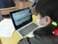 今日(2月9日)5年生は、音楽で「日本の楽器のひびき」という学習をしていました。その学習で使っていた教具は何かというと、写真にあるようにタブレットパソコンです。