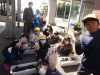 さっそく今日(2月10日)の昼休みに、環境委員の子供たちがプランターへの植え替えをしてくれました。プランターは玄関付近に設置して大切に育てていきます。