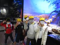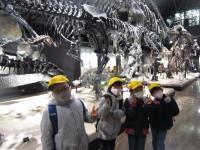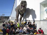 往復ともに路線バスに乗車しました。これも貴重な体験学習です。恐竜博物館前では、全員でティラノサウルスと記念写真を撮りました。
