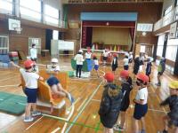 最初に椅子の位置を確認し、練習を始めるにあたって「基本的な事柄」の確認がありました。本格的に始まった体育館での練習に6年生の表情も引き締まっています。
