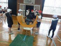 最初は低い台での練習です。初めての挑戦でしたが、みんなやる気満々で生き生きと練習していました。