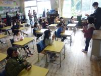 その後、各教室を回って代表者に修了証を渡しました。上の写真は、1年生と2年生の様子です。