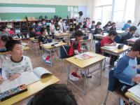 以前からお知らせしておりますように、本校は文部科学省の教育課程特例校の指定を受け、特別に1年生から6年生まで英語科の授業を行っています。通常の学校は、3・4年生が外国語活動、5・6年生が外国語科として学習するものです。