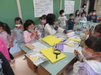 続いて、お兄さん、お姉さんが勉強している各教室や理科室や音楽室なども探検しました。見て、聞いて、触って、学校の中をしっかり探検して世界を広げることができた1年生でした。