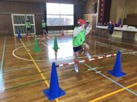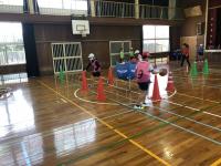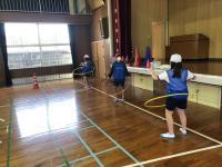 6年生は人数が12人なので、3人ずつの班に分かれ、四つの場をローテーションしながら活動していました。様々な動きを工夫しながら意欲的に活動ができていました。