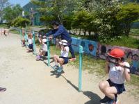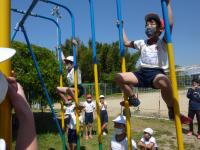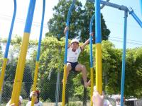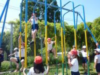 登り棒では、思い思いの登り方でてっぺんを目指しました。てっぺんまで登れた子供も多くいましたが、登れなくて悔しがっている子供もいました。しかし、みんな一生懸命に挑戦できていました。