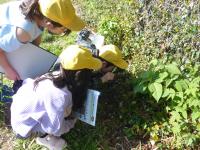 今日は、「しぜんのかんさつ」というお勉強でした。校庭に出てどんな植物があるかを探しました。手元の資料をもとに見つけた植物にふせんを貼っていきました。虫めがねも使いながら、「オオイヌノフグリを見つけた」など、歓声をあげいきいきと頑張っている3年生でした。