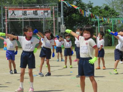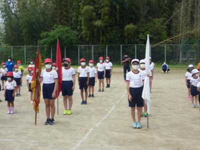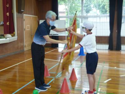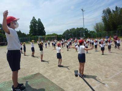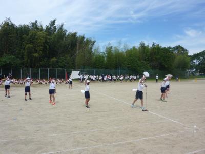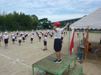 低学年のお手本になれるようラジオ体操もしっかりと練習していました。開閉会式は6年生の出番が多いのでしっかりと確認をしていました。