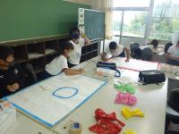 5・6年生は運動会に向けての活動です。応援団は体育館と音楽室に分かれて練習を頑張っていました。5年生の一部は、運動会用の応援旗を作っていました。