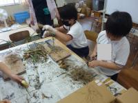 上学年の子供たちが包丁で葉の部分を切り落とします。低学年の子供たちははさみで根切りをしていました。自分たちで育てた玉ねぎなのでとても嬉しそうな笑顔で作業に取り組んでいました。収穫した玉ねぎはお家に持って帰ります。おいしい料理になるといいですね。