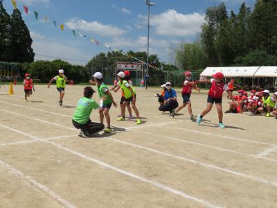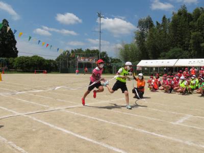 最後は、高学年によるリレーです。優勝をかけたリレーなので力が入ります。全員がつないだバトンは、数十センチの差で決着がつきました。見事な勝負でした。