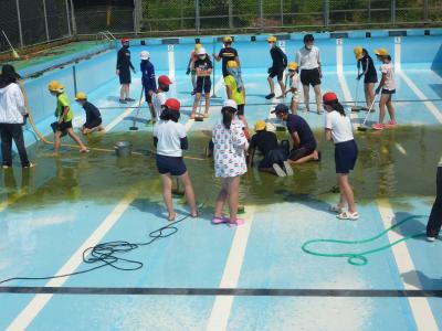 今日(6月1日)、3年生以上でプール掃除を行いました。