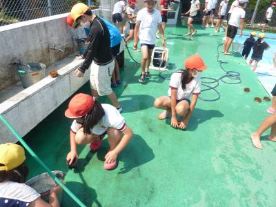 思い思いに、歓声をあげながら生き物を探し、網を使って捕まえていました。