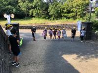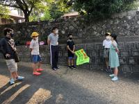 最後は、メンバーが集まって、今日良かった班やあいさつ名人について出し合い確認しています。