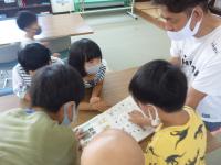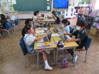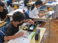 その後は、図書室で調べ学習です。捕まえた生き物の特徴や食べ物を調べていました。捕まえた生き物はしっかりと調べた後、自然に返します。