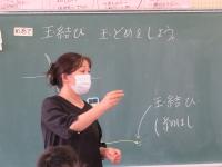 まずは、用具の名前や、安全面の約束を確認して、今日は「玉結び」の練習をしました。