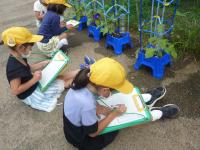 朝顔には、丁寧に「ついひ」(追肥)をした後、花芽の様子をスケッチしました。学級で一番に一輪だけ咲いた朝顔を育てている子は、とてもうれしそうに眺めていました。