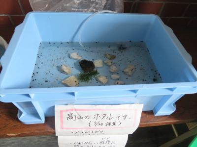 その一環として、教頭先生が高山のホタルの産卵に挑戦していました。昨年度はうまくいかなかったのですが、今年度は産卵から幼虫の誕生に成功しました。