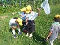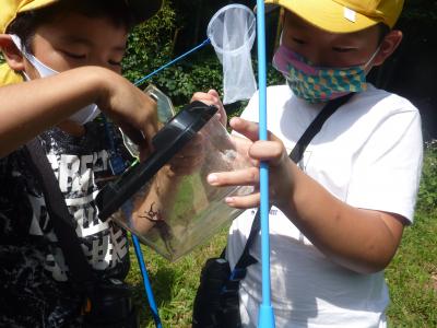 ナナフシやバッタ、カナヘビなどを捕まえました。なんと、カブトムシを捕まえた子もいて、大興奮でした。