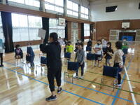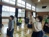 1年生は、来週10月28日(木)の午後、御船町学力向上研究発表会で公開授業を行う予定です。十数名の参観者が来校されるため、当日は体育館で授業を行います。それに備えての授業です。