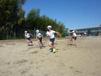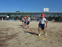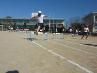 今日(10月26日)4年生は、体育で小型ハードル走に取り組んでいました。