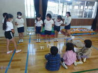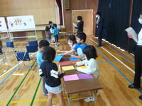 その後、1年生は6つのコーナーを巡りながら遊びます。