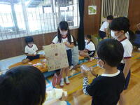2年生は今日(10月27日)、生活科の学習で「おもちゃランドをもりあげよう」という学習に取り組みました。自分たちで手作りしたおもちゃが揃うおもちゃランドに1年生を招待して、1年生に楽しんでもらうことが目的でした。