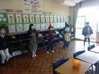 昨日から今日(10月29日)にかけて、各学級単位でハロウィンパーティーを楽しんでいます。本校が取り組んでいる英語教育に関係する「国際理解教育」の一環として行っています。