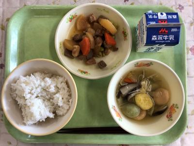 麦ごはん、つみれ汁、豚角煮、牛乳