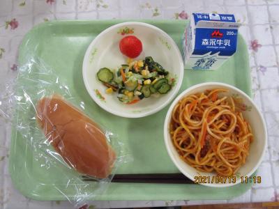 ミルクパン、スパゲッティナポリタン、コーンサラダ、いちご、牛乳