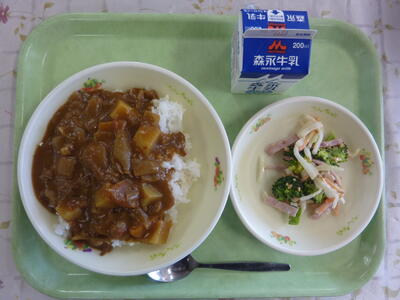 カレーライス(麦ごはん、ビーフカレールー)、大根サラダ、牛乳