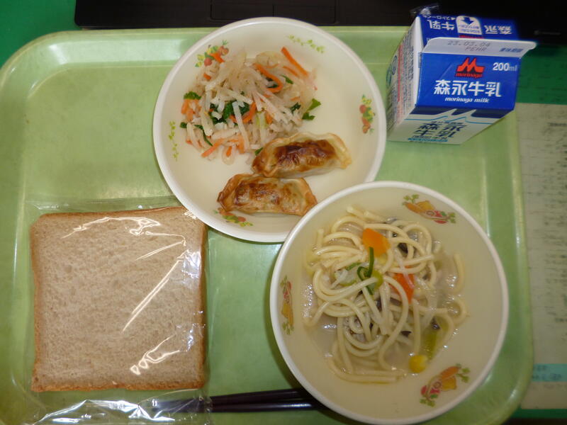 黒糖パン、牛乳、ちゃんぽん、焼き餃子、大根のナムル