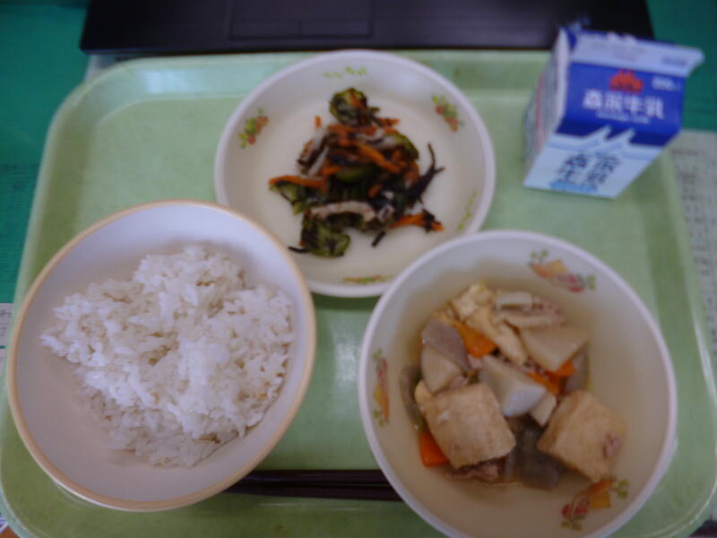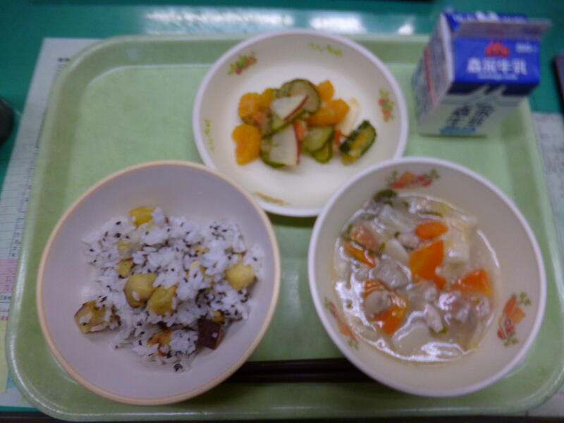 さつま芋ご飯、牛乳、だんご汁、菜果なます
