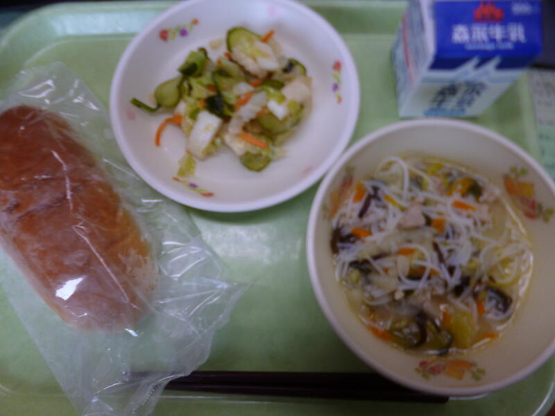 ミルクパン、牛乳、汁ビーフン、イタリアンサラダ