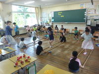 今日(7月17日)は、またまた1年生の話題です。1年生は、音楽の学習でバンブーダンスに取り組んでいました。