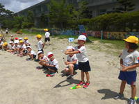 1年生は、今日(7月20日)も楽しい学習がありました。生活科「夏がやってきた」の中の「水鉄砲で遊ぼう」でした。