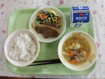 7/8 今日の給食 投稿日時 : 2020/07/08 承認者 麦ごはん、ビーフステーキ、コンソメスープ、三色いため、牛乳 0 {{options.likeCount}} {{options.likeCount}} {{options.unlikeCount}} {{options.unlikeCount}}