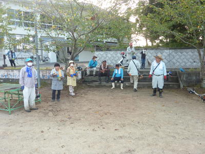 2時間ほどの作業で校庭は見違えるほどすっきりとしました。老人会の方々、保護者の方々本当にありがとうございました。