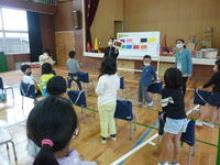 今日(10月21日)1年生は、英語の授業を体育館で行いました。