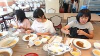 歩き疲れてお腹が減った子供たち。たくさん食べて、明日に備えます。