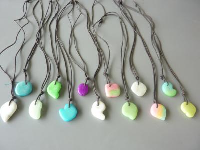 思い思いに色を塗り、紐を通して完成です。とても素敵な勾玉ができあがりました。おしゃれな封筒に入れ、家族の方へのプレゼントとなります。